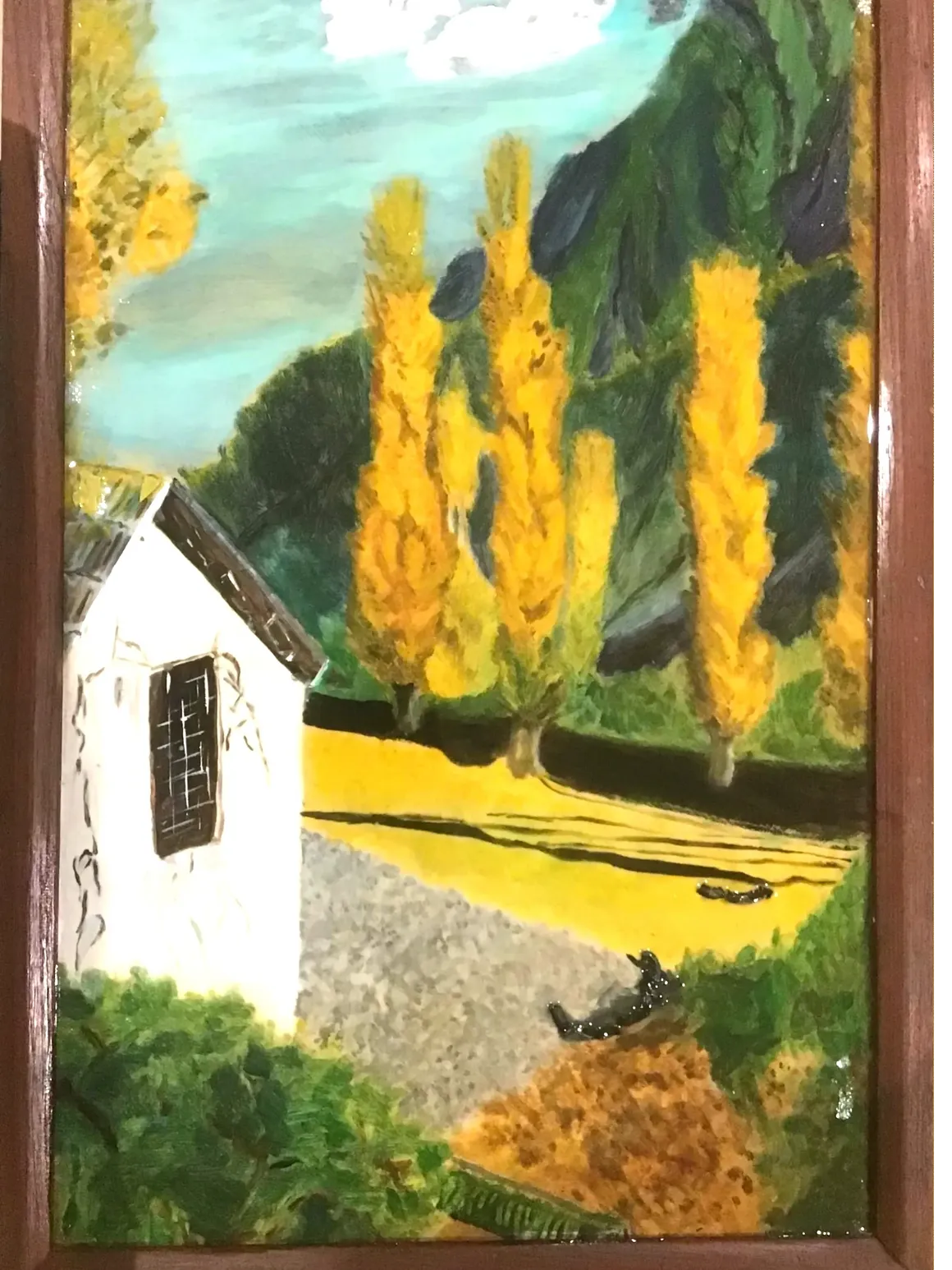 Painted on board in acrylic with resin coating.